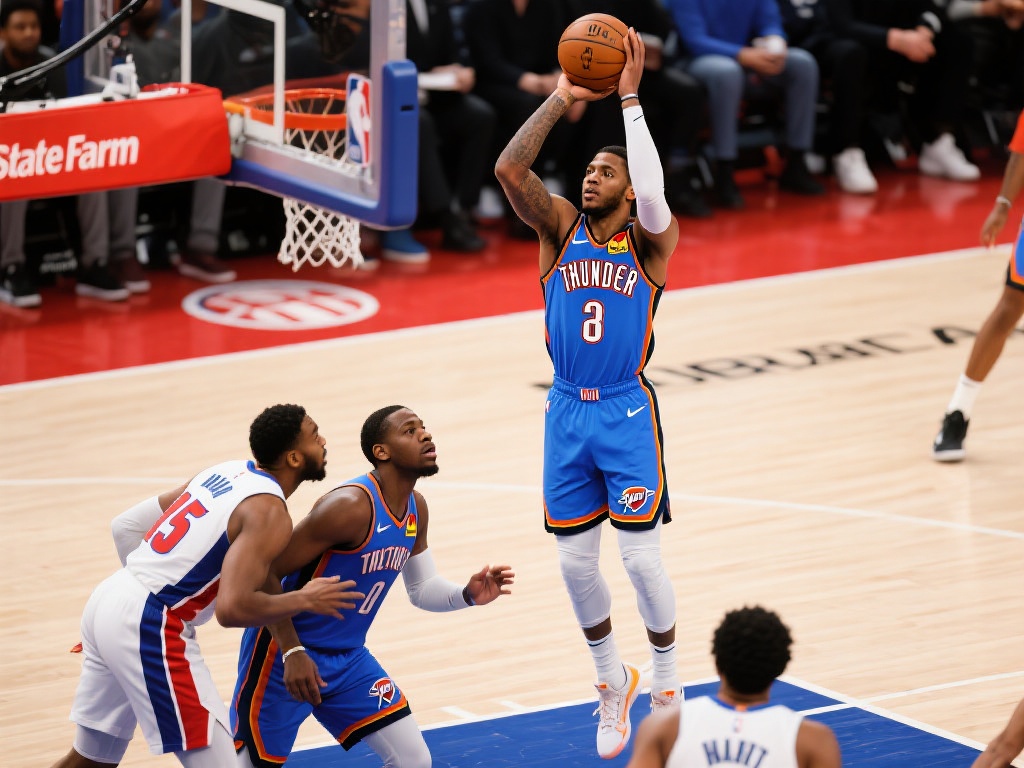 杰威跳投建功贡献20分,雷霆三少齐飙20+力压活塞9分